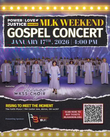 Excitement is in the air! Get ready to be part of something extraordinary at the MLK Power, Love and Justice Weekend-Akron's Rising to Meet the Moment Gospel Concert featuring Chicago Mass Choir!