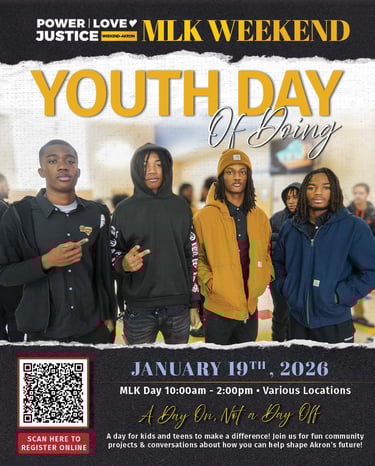 Join us for the 2026 Day of Doing, part of the MLK Power, Love, and Justice Weekend-Akron. This event is your chance to engage with organizations focused on power, love and justice. Together, we will strengthen our community bonds and amplify marginalized voices.